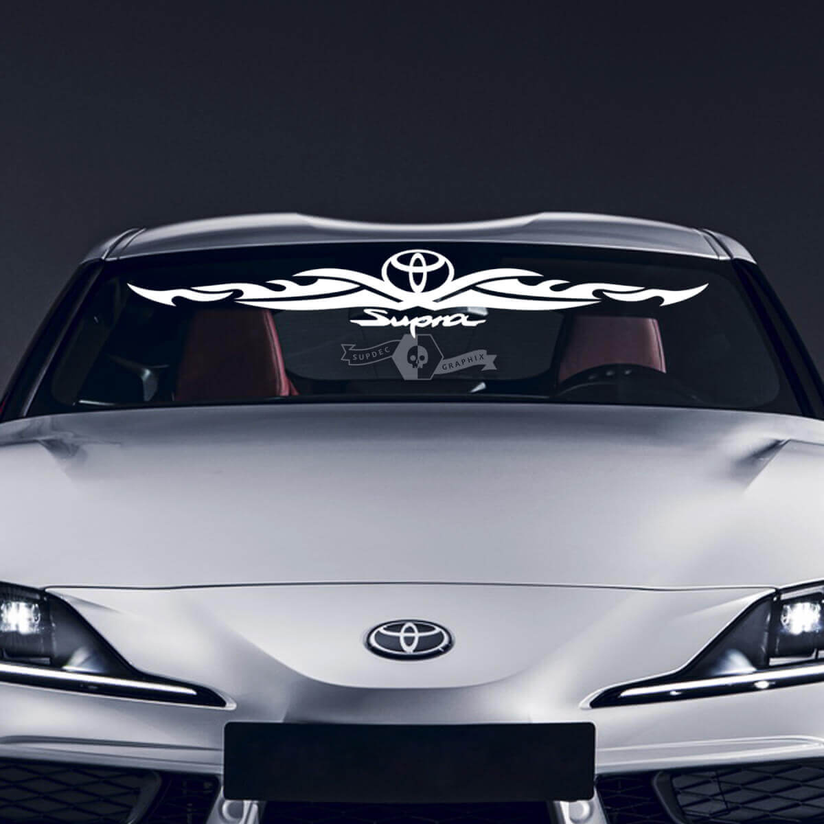 Rüsten Sie Ihren Toyota Supra MKV A90 oder A91 mit unseren hochwertigen Tribal Windschutzscheiben-Grafikaufklebern auf. Diese Vinylsticker sind perfekt für Autoenthusiasten, die Stil und Individualität suchen, und verleihen Ihrem Wagen einen eleganten, persönlichen Tribal-Look.