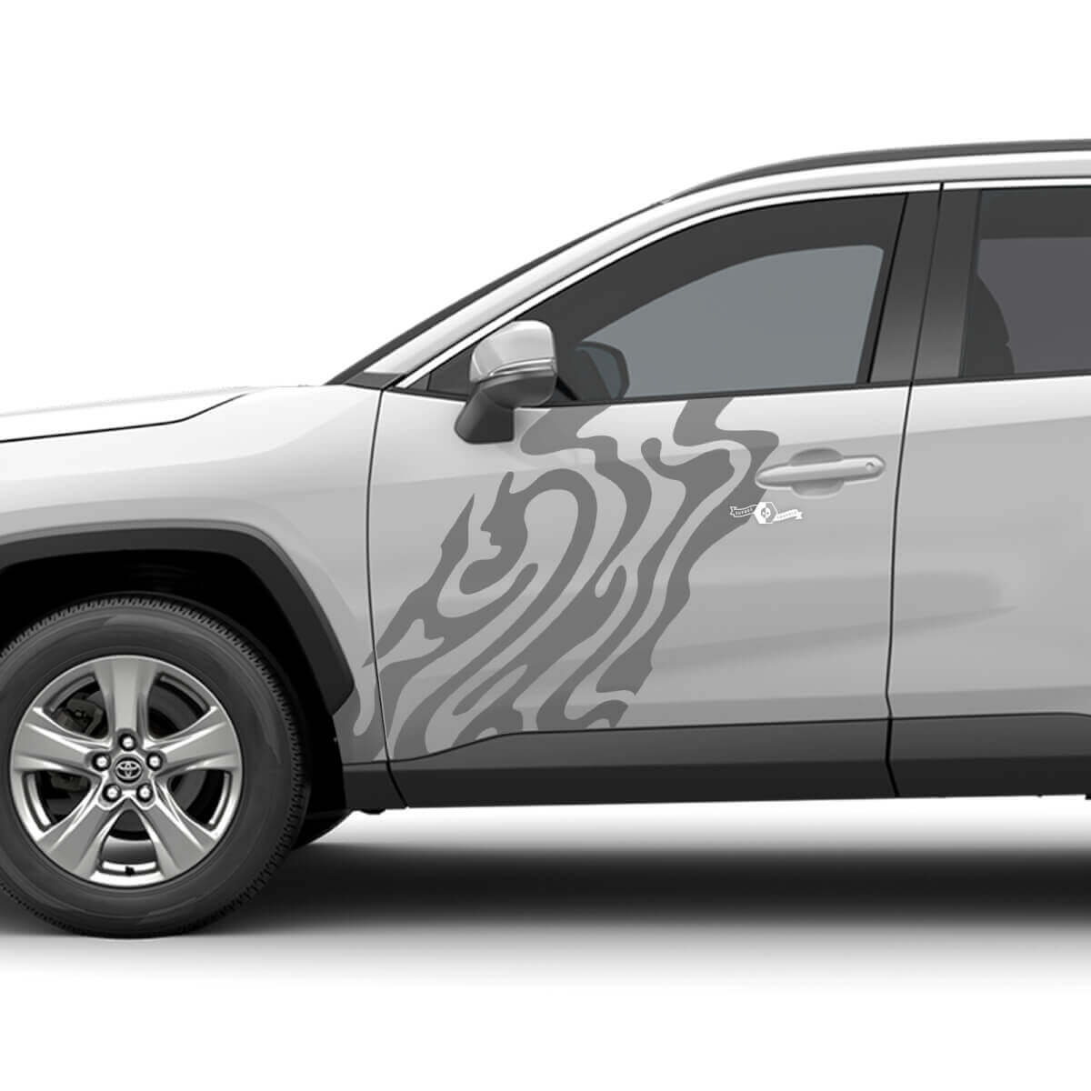 Bestellen Sie jetzt, um Ihrem Toyota RAV4 mit unserem seitlichen abstrakten Vinyl-Aufkleber ein einzigartiges und auffälliges Upgrade zu verleihen!