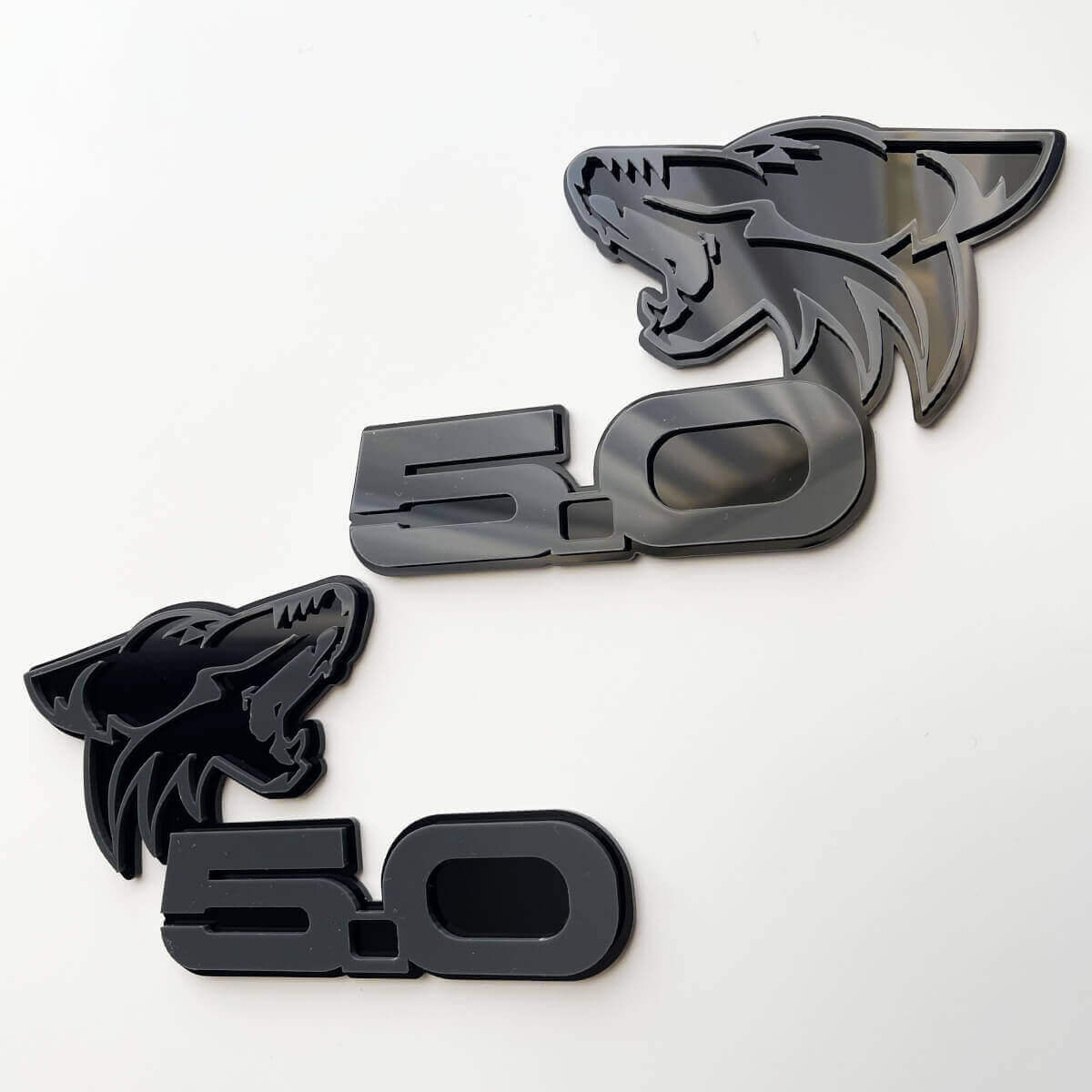 Verbessern Sie den Stil Ihres Fahrzeugs mit dem COYOTE 5.0 Kotflügel-Emblem. Dieses elegante 3D-Emblem besticht durch ein auffälliges schwarz-graues Farbschema, das die Außenoptik jedes Autos ergänzt.