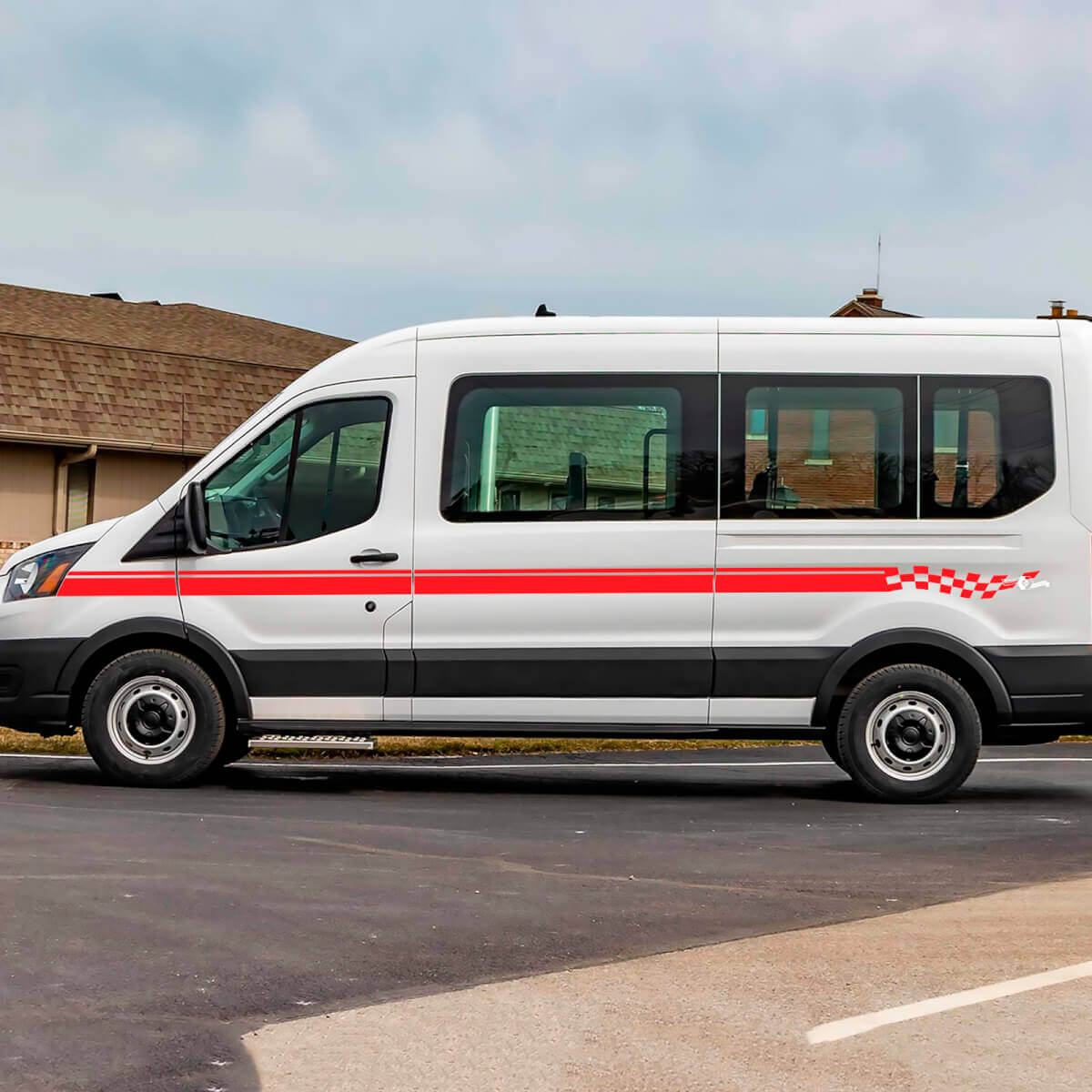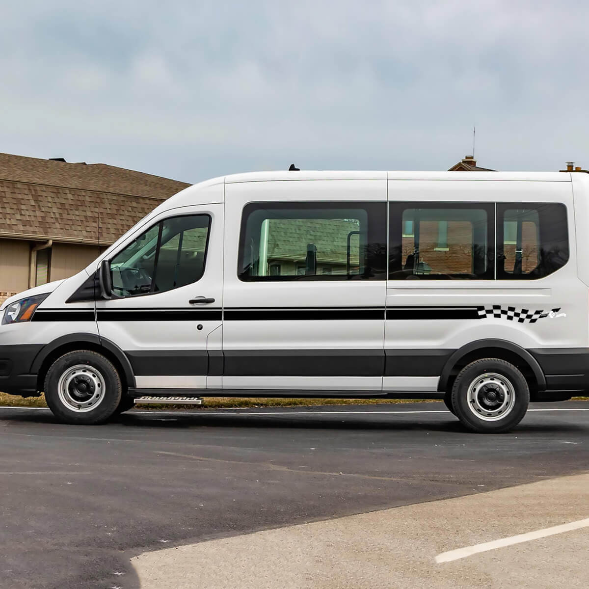 Verbessern Sie den Stil Ihres Ford Transit mit unseren karierten Vinyl-Seitenstreifen-Aufklebern. Für Langlebigkeit und einfache Anbringung entwickelt, verleihen diese Aufkleber den Seiten Ihres Fahrzeugs ein sportliches, dynamisches Aussehen.