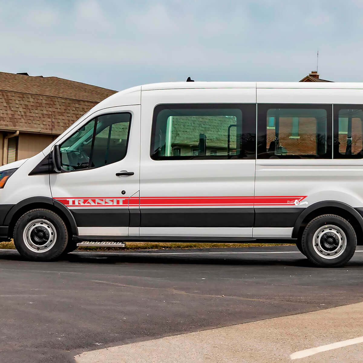 Verbessern Sie das Aussehen Ihres Ford Transit mit unseren hochwertigen Vinylseitenstreifen-Aufklebern. Für eine perfekte Passform entworfen, verleihen diese Aufkleber Ihrem Fahrzeug einen eleganten, individuellen Look.