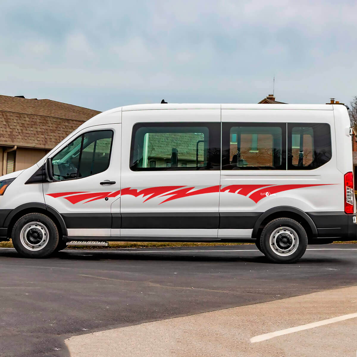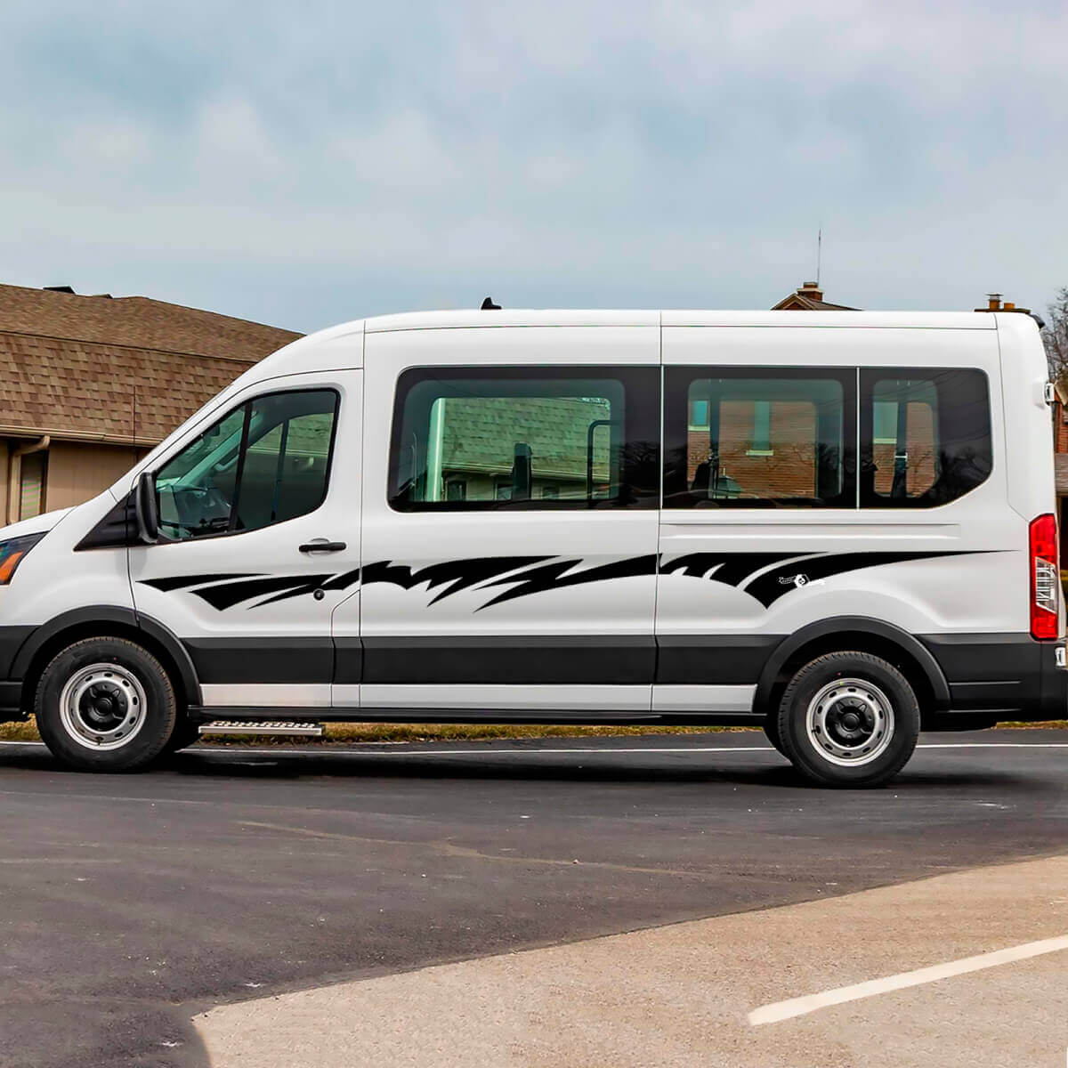 Bestellen Sie jetzt und verwandeln Sie Ihren Ford Transit mit diesen eleganten Seitenstreifen-Aufklebern!