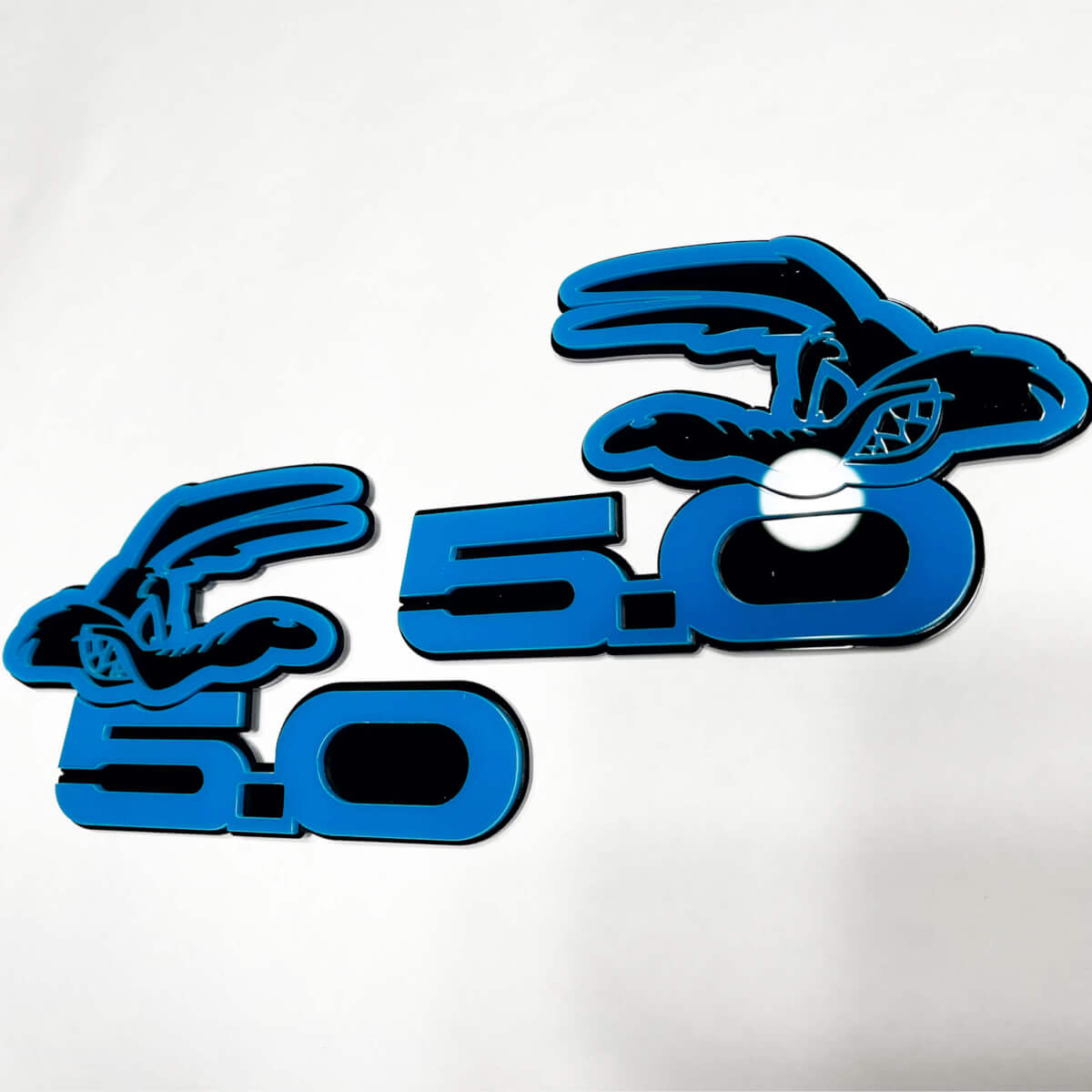 Verbessern Sie den Stil Ihres Fahrzeugs mit dem COYOTE 5.0 Kotflügelabzeichen Emblem, erhältlich in elegantem Schwarz oder lebendigem Blau. Diese 3D-Abzeichen sind aus hochwertigem Vinyl gefertigt und gewährleisten langanhaltende Haltbarkeit sowie einen auffälligen, markanten Look.