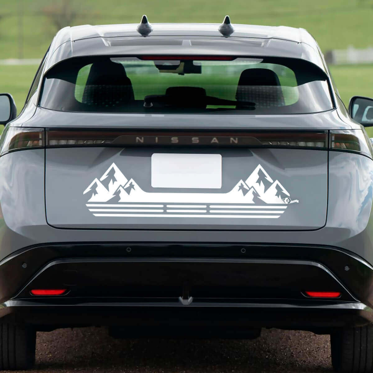 Mit unserem rückseitigen Mountains Racing Grafikaufkleber können Sie sich auf der Straße abheben und Ihre Liebe zum Abenteuer und zur Natur zeigen. Das detaillierte Bergmotiv verleiht Ihrem Nissan ARIYA ein robustes und abenteuerliches Aussehen und macht ihn zu einem einzigartigen und auffälligen Fahrzeug im Straßenverkehr. Ob Sie durch die Stadt fahren oder auf der Autobahn unterwegs sind, dieser Aufkleber setzt ein Statement.