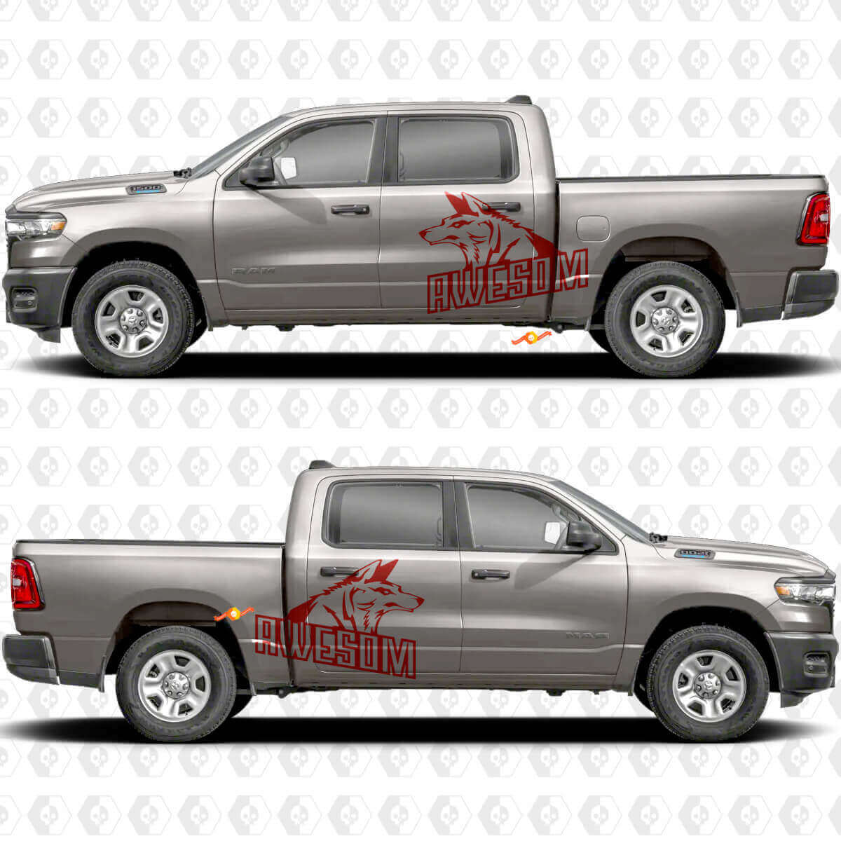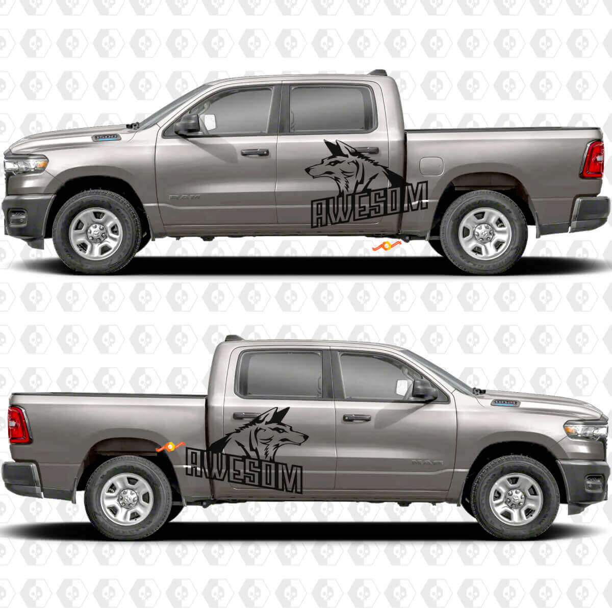 Verwandeln Sie die Seitentüren und Seitenbereiche Ihres Fahrzeugs mit unseren Awesome Wolf Splash Stickern, Aufklebern und Grafiken. Diese hochwertig bedruckten Vinyl-Aufkleber zeigen ein markantes Wolfsmotiv mit dynamischen Spritzereffekten, ideal, um Ihrem Auto oder Truck einen kräftigen und abenteuerlichen Look zu verleihen. Egal, ob Sie Ihr Fahrzeug personalisieren oder auf der Straße auffallen möchten, diese langlebigen Aufkleber bieten ein scharfes, lebendiges Erscheinungsbild, das hervorsticht.