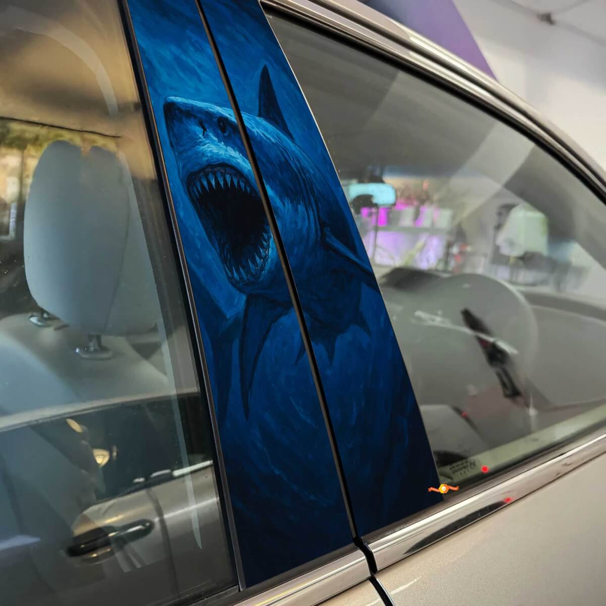 Verwandeln Sie Ihr Fahrzeug mit dem markanten und auffälligen Great White Shark Style Säulentür Vinyl-Aufkleber. Entwickelt, um den Säulen Ihres Autos einen kühnen, vom Ozean inspirierten Akzent zu verleihen, setzt dieser Vinyl-Aufkleber ein beeindruckendes Statement, das sowohl für Hai-Enthusiasten als auch kreative Autofans perfekt ist.