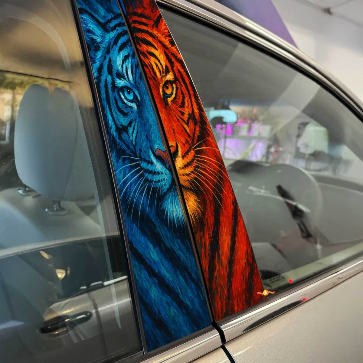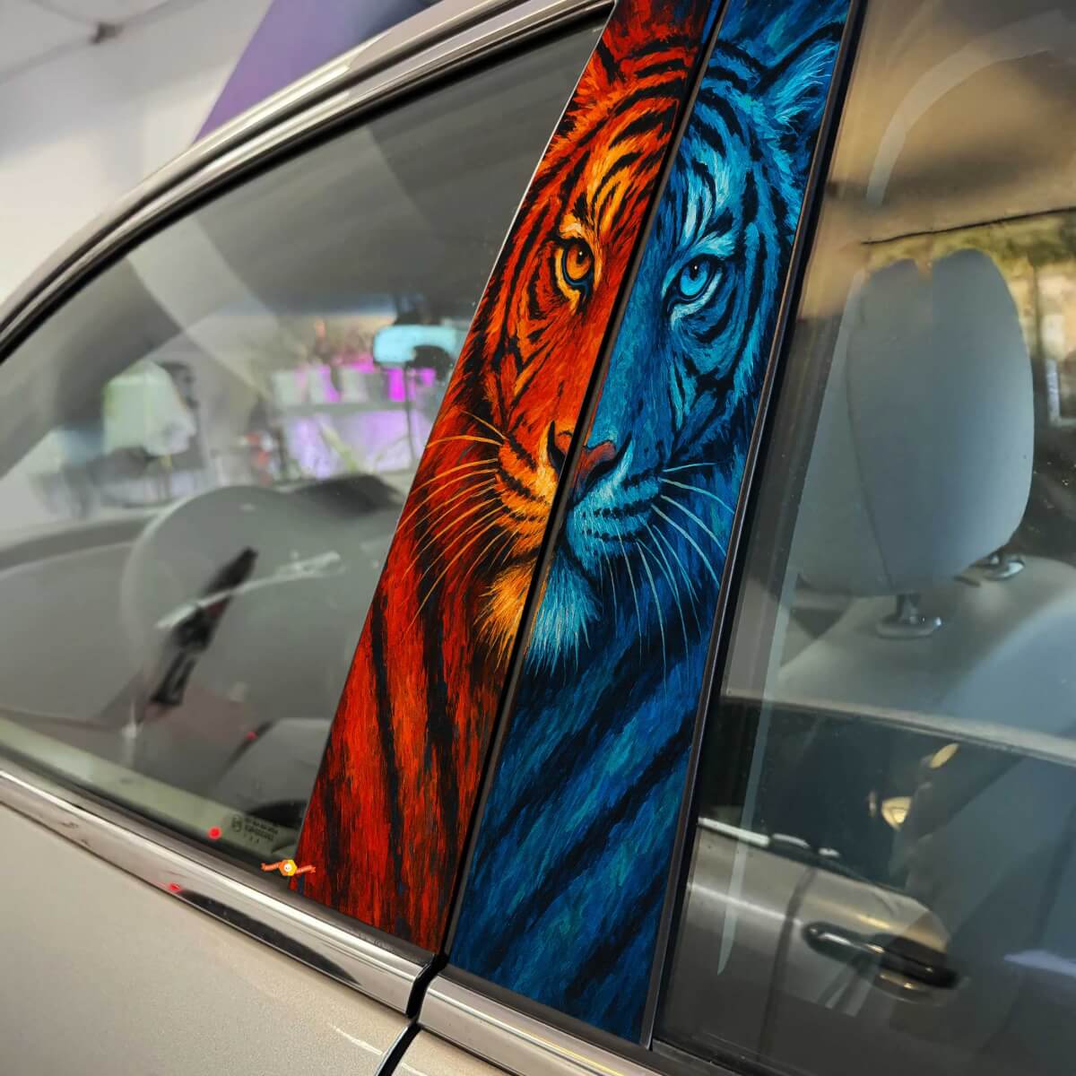 Verbessern Sie den Stil Ihres Fahrzeugs mit unserem Two Tone Tiger Guise Säulentür-Vinylaufkleber. Dieser auffällige Aufkleber zeigt ein markantes Tigerdesign in einer beeindruckenden zweifarbigen Farbkombination, perfekt gestaltet, um den Säulentüren Ihres Autos einen wilden und einzigartigen Akzent zu verleihen. Hergestellt aus hochwertigem Vinyl, ist er wetterbeständig und bietet langanhaltende Haltbarkeit ohne Verblassen oder Abblättern.