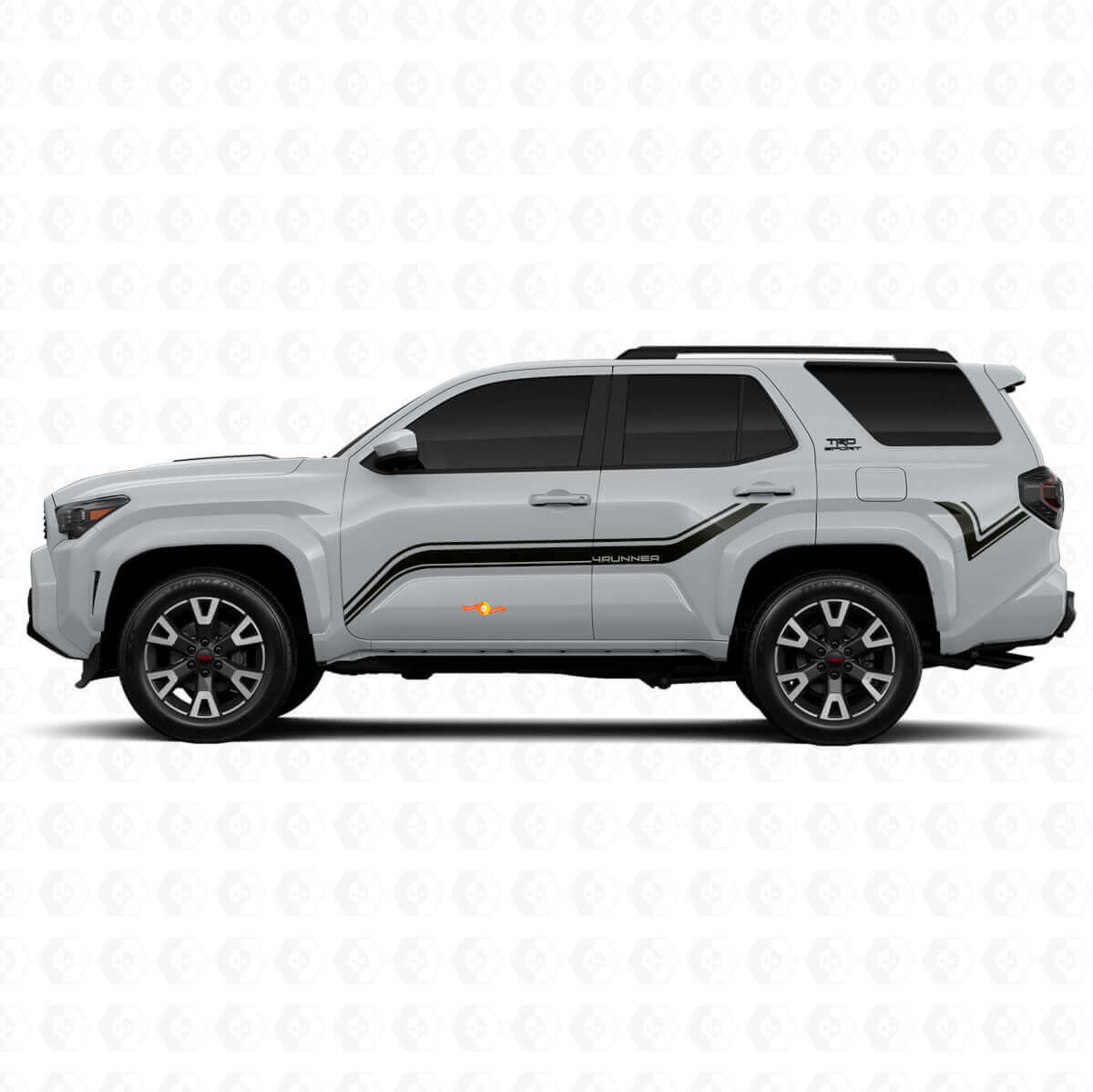 Verbessern Sie das sportliche Aussehen Ihres Toyota 4Runner mit unseren Vinyl-Aufklebern für gebogene Seitenstreifen. Speziell entworfen, um den robusten Stil Ihres Fahrzeugs zu ergänzen, verleihen diese Aufkleber einen schlanken und dynamischen Akzent, der überall für Aufsehen sorgt.