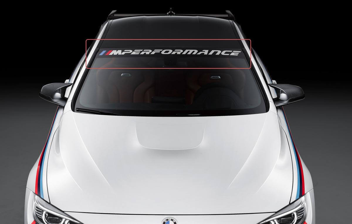 Verwandeln Sie Ihr Auto in einen ausdrucksstarken Ausdruck von Persönlichkeit und Leidenschaft für Leistung mit dem neuen BMW M Performance Banner auf der Windschutzscheibe!
