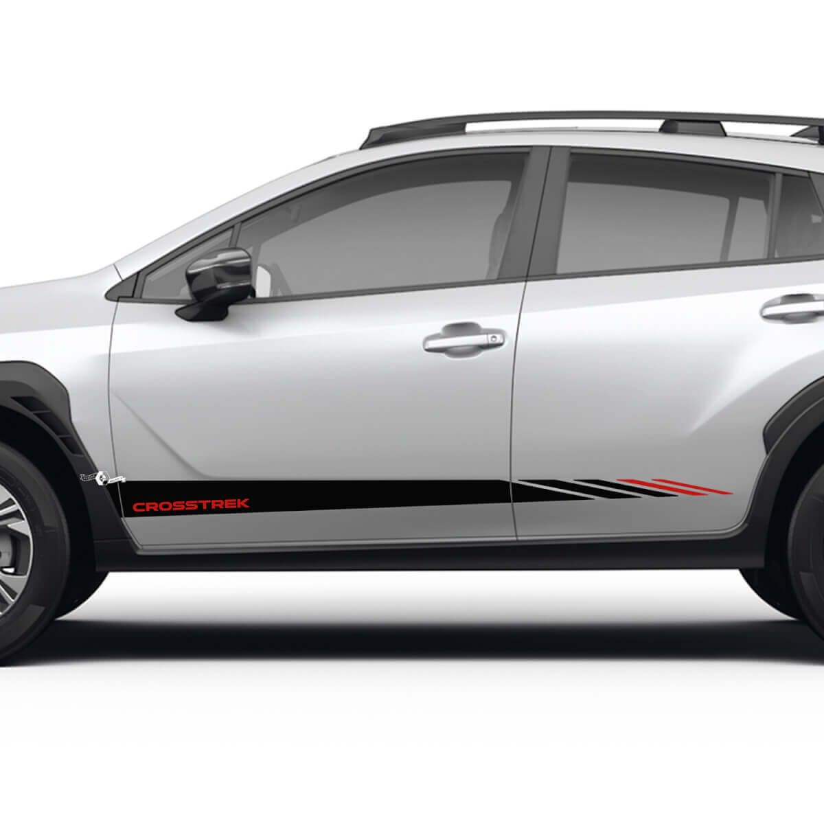 Verleihen Sie Ihrem Subaru Crosstrek mit unseren Seiten-Rennstreifen-Aufklebern ein sportliches und dynamisches Aussehen. Diese Vinyl-Streifen sind perfekt an den Seiten Ihres Fahrzeugs angebracht und sorgen für einen schlanken Rennstil.