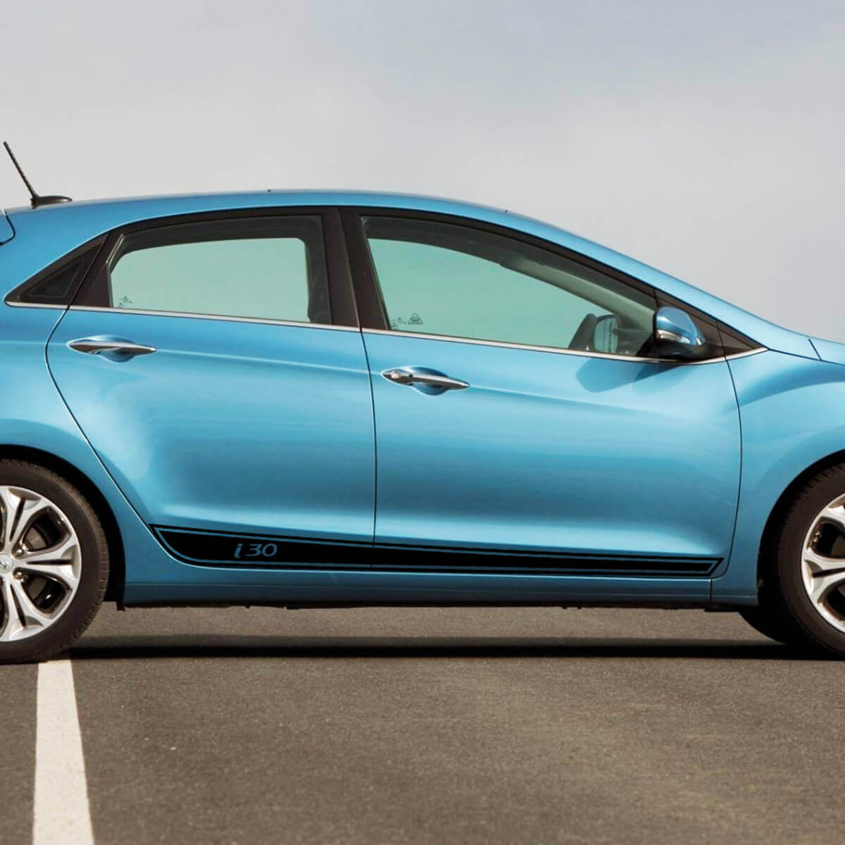 Verleihen Sie Ihrem Hyundai i30 mit unserem Set aus Seitestreifen-Aufklebern einen eleganten und sportlichen Look. Diese Vinyl-Aufkleber sind passgenau gestaltet und verbessern mühelos den Stil Ihres Fahrzeugs.