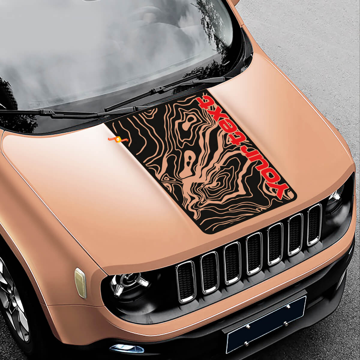 Verbessern Sie den Stil Ihres Jeep Renegade mit unserem Topographische Karte Motorhauben-Vinylaufkleber. Dieser einzigartige Aufkleber verleiht einen robusten, abenteuerlichen Look, inspiriert von detaillierten topographischen Karten.