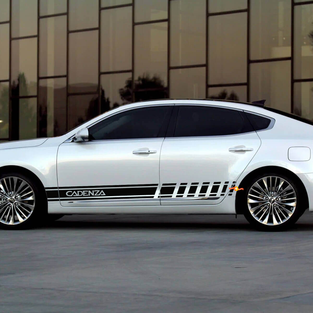 Verleihen Sie Ihrem Kia Cadenza mit unseren seitlichen Racing-Stripes-Vinylaufklebern eine sportliche und dynamische Note. Diese Aufkleber sind für eine perfekte Passform konzipiert und bieten ein schlankes ästhetisches Upgrade, das den Stil Ihres Fahrzeugs verbessert.