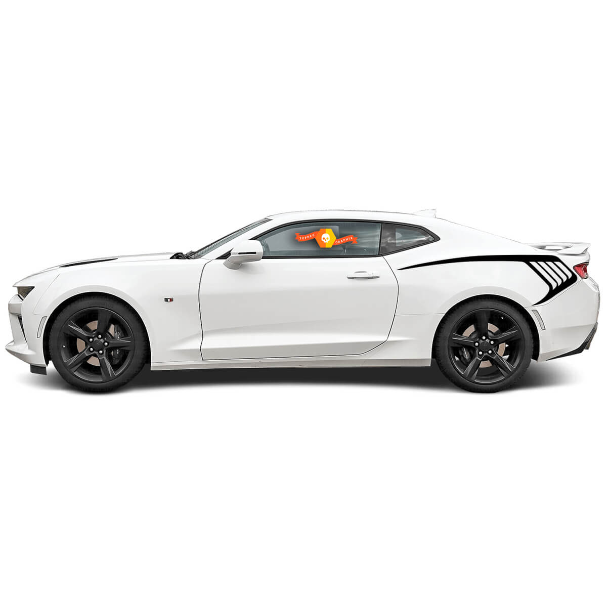 Rüsten Sie Ihren Chevrolet Camaro 2016-2018 mit unseren maßgeschneiderten Akzentstreifen für die hinteren Kotflügel auf. Diese hochwertigen Vinylaufkleber verleihen Ihrem Fahrzeug einen schlanken, sportlichen Look und schützen gleichzeitig den Lack darunter.