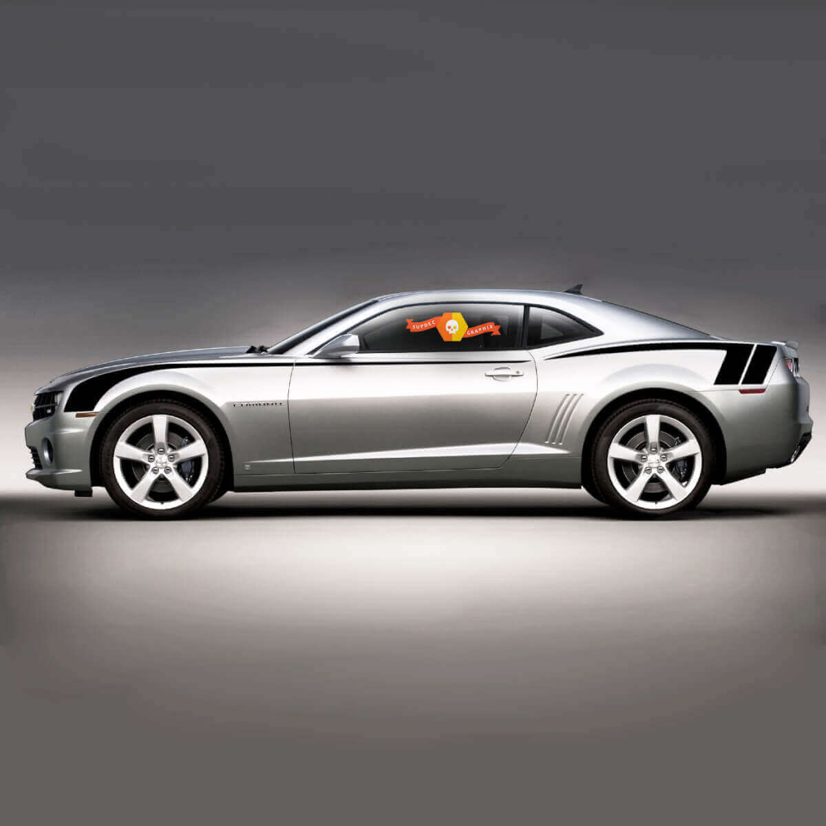 Verbessern Sie Ihren Chevrolet Camaro 2010-2015 mit unseren Side Hockey W Copo Style Stripes Vinyl-Dekoren. Entwickelt, um Ihrem Auto ein einzigartiges und sportliches Aussehen zu verleihen, ergänzen diese Streifen perfekt den aggressiven Stil des Camaro.