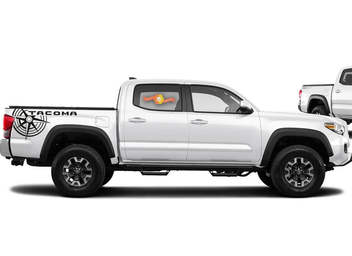 Verbessern Sie das Erscheinungsbild Ihres Toyota Tacoma mit dem TRD Seitenbett-Grafikaufkleber Modell 9. Speziell für Tacoma Trucks entwickelt, verleiht dieser Aufkleber ein markantes und sportliches Aussehen, das auf der Straße auffällt.