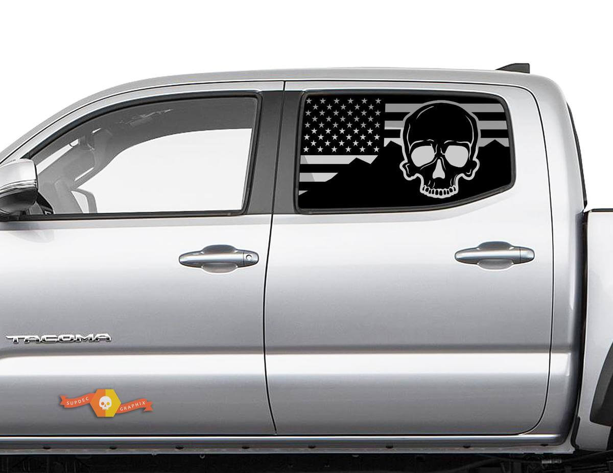 Toyota Tacoma 4Runner Tundra Hardtop USA Flagge Berge Totenkopf Windschutzscheiben-Aufkleber JKU JLU 2007–2019 oder Dodge Challenger Charger Suba Ascent Forester Wrangler Rubicon – 152